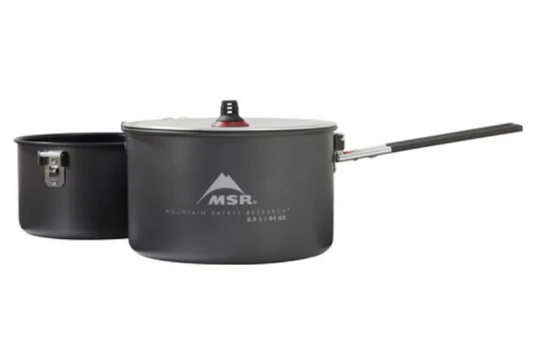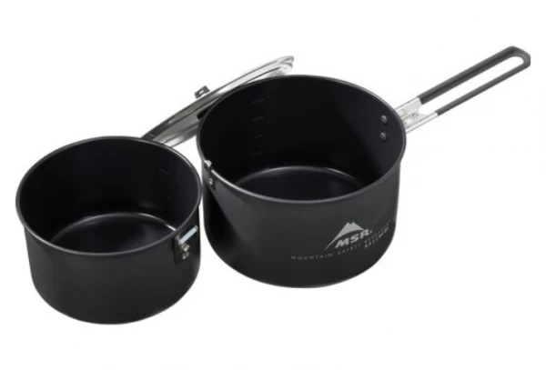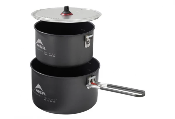 - Compacte : les casseroles 2,5 l et 1,5 l s’imbriquent pour économiser la place dans le sac.