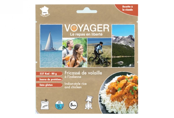 Poulet à l’indienne avec son riz en portion individuelle: Des saveurs et du goût pour ce plat présenté avec de vrais morceaux de poulet. Un plat aromatique agréable pour voyager loin sans pour autant se ruiner.