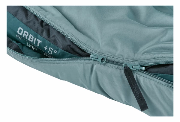 Le matériau extérieur du sac de couchage est composé de matériaux 100 % recyclés et ne comporte pas de coutures. Il offre donc une performance à des températures plus élevées et protège contre la pénétration de l’humidité. La répartition à 360° du garnissage High-Loft Hollowfibre assure également un climat thermique agréable dans le sac de couchage. Des détails bien pensés tels que la protection de la fermeture éclair, la poche intérieure pour les objets de valeur et la capuche de contour ainsi que le matériau extérieur robuste et performant font de ce sac de couchage un compagnon durable pour l’été.