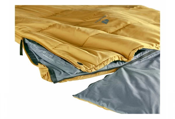 Le matériau extérieur du sac de couchage en forme de couverture est composé à 100 % de matériaux recyclés. Grâce à la répartition à 360° du garnissage en fibres creuses High-Loft et à la housse intérieure douce en tissu de coton mélangé, un climat chaud et agréable règne dans ce sac de couchage. L’oreiller amovible et l’espace généreux pour les jambes offrent un confort supplémentaire. Qu’il soit ouvert comme une couverture ou couplé comme un sac de couchage double, le matériau extérieur robuste et performant fait de ce sac de couchage un compagnon résistant et durable pour les voyages de camping de toutes sortes.